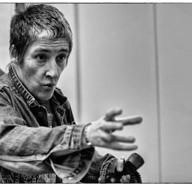 Terry was especially good with small audiences in difficult spaces. There is nothing worse than our audiences feeling a sense of obligation to participate or speak, that we (as Joker) need to be saved from the embarrassment of the game not working by their participation. With a small group, Terry was very good at lowering the stakes of participation, with far less of the ’Come on down and show us!’ quality of larger staged Forum pieces - rather more the sense of a quieter shared therapeutic process, that we are just a group of people in a room having a good chat about something important. Terry could sit with a cast of 4 and an audience of 6 spectactors in the lounge of a hostel and make this quiet magic happen.